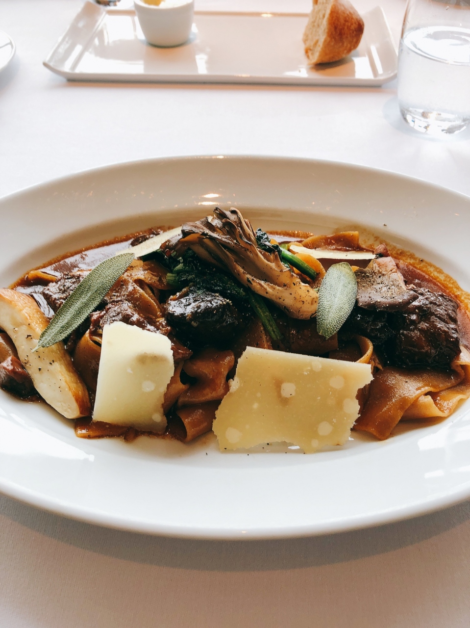 パスタは全粒粉できのこ類と牛肉、濃厚なソースでした。
