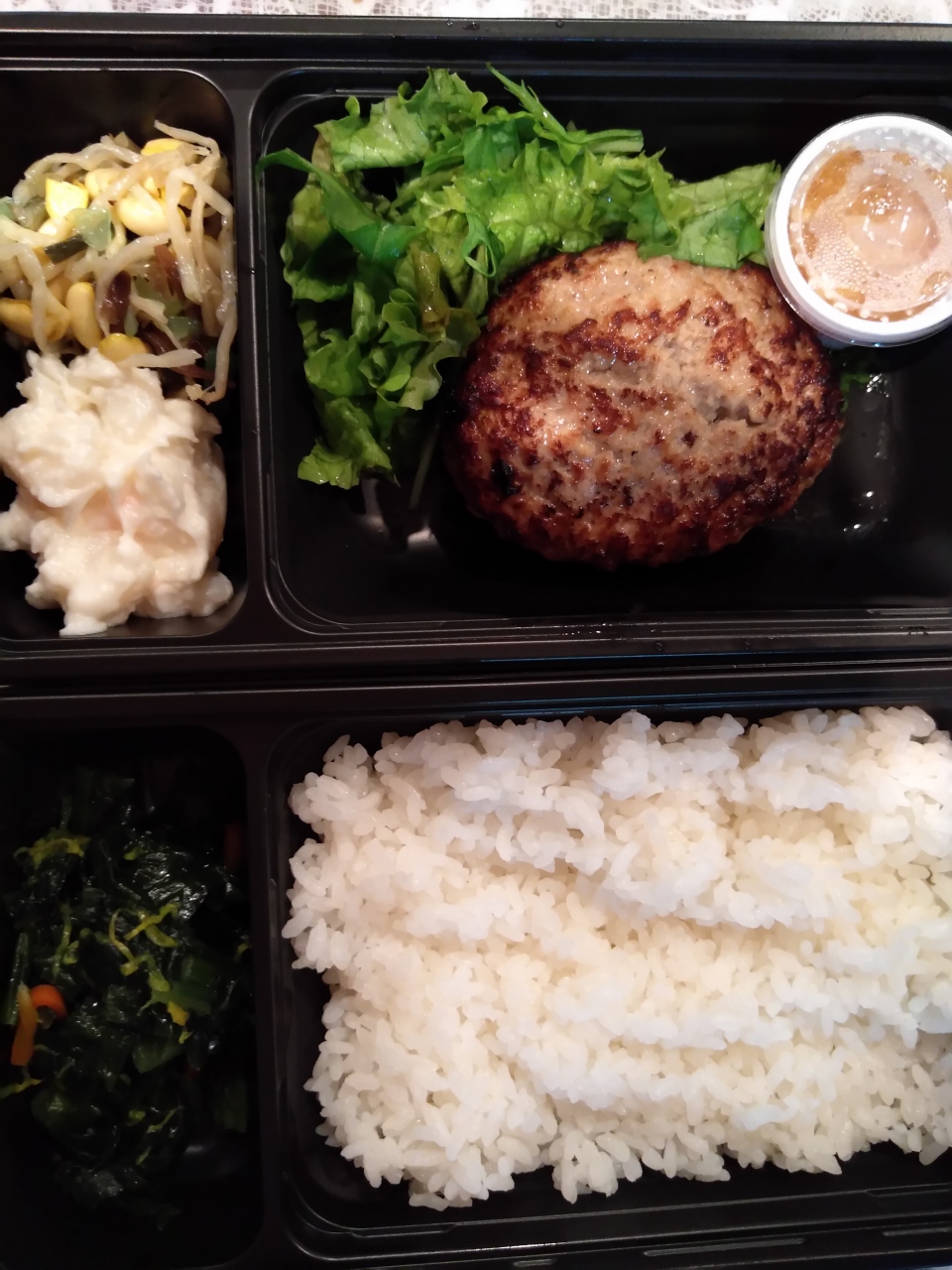 桜台の駅から近いけど、ちょっと裏通りみたいな感じの場所にある。お店こじんまり。でもここは焼肉などお肉を楽しめるお店。そして、ハンバーグのお弁当などやってます。テイクアウト利用可能です。ハンバーグこぶりだけど、ジューシー。黒い箱に二段で入っていて、重厚感もあった。