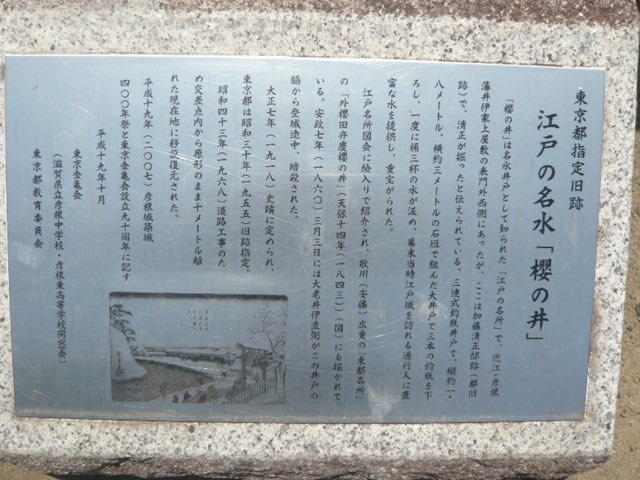 桜の井に係る解説板にも記載されていますが、三宅坂の路面電車道整備の関連で移動したようで、明治時代には、井戸の機能はなかったのではないかと推察しています。