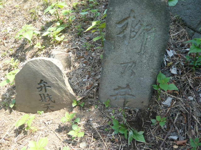 柳の井戸の標石柱の傍には、水の神様である弁財天の文字が見える標石があります。