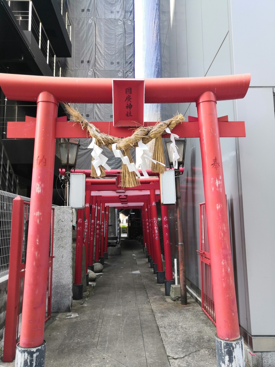 博多リバレインと川を挟んで西側にあります。参道はもう一本西の中洲中央通り側にあります。中洲の守り神とのことです。日本の祭りの中でも唯一の女性だけの御輿である國廣女みこしはこちらの神社に由来するそうで遊行地として整備された場所の名残を感じます。
