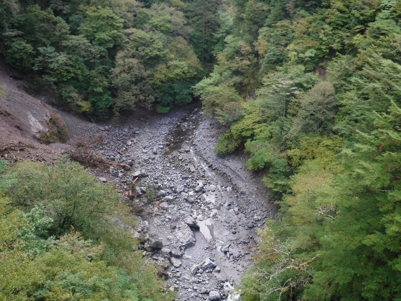 先に渡った夢の吊り橋に比べると、橋の下はかなり深く、眼が眩むほどだ。