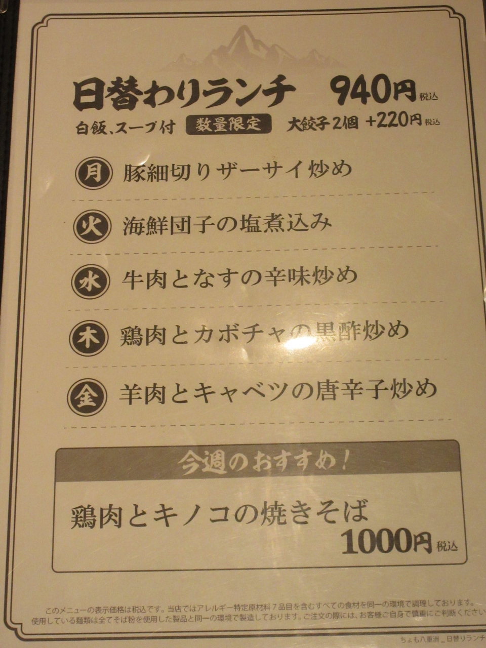 ランチメニューがあって、お昼の日替わりランチもあります。火曜日は『海鮮団子の塩煮込み』。