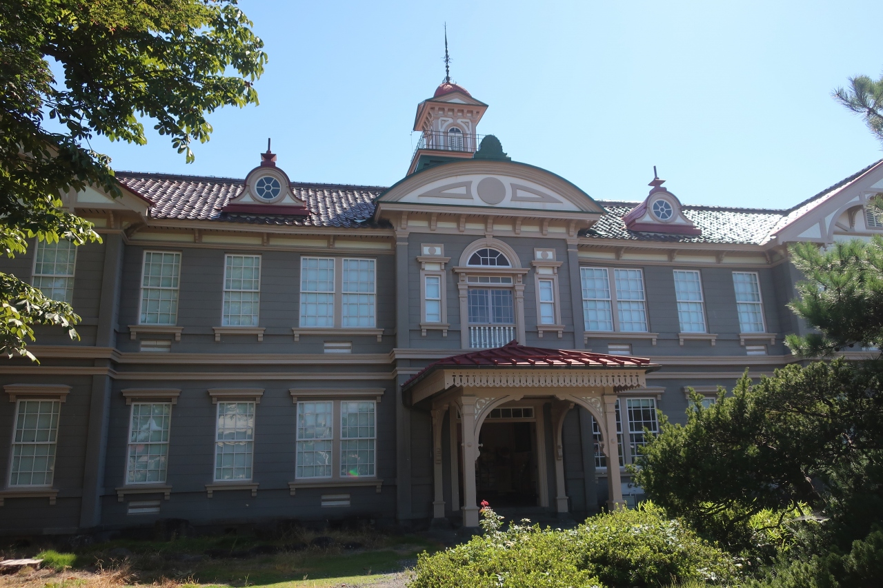 明治34年(1901)建築の旧山形師範学校本館を利用した資料館です。ルネサンス様式を基調とした木造桟(さん)瓦葺き二階建ての建物は、この時代の学校建築らしい、手の込んだものです。新しい時代に立派な人物を輩出しようと意気込む当時の人々の気合が感じられて感動ものです。