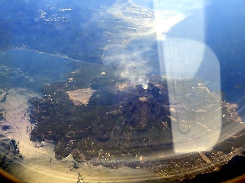 大阪から台湾に飛ぶ航空機は、直近を通ることがあり、滅多に見れない上空からの山頂も見える。