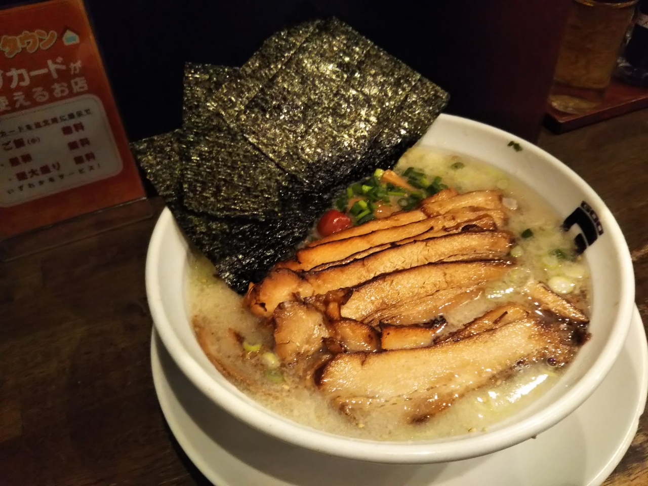 とんこつは塩というだけあって、あっさり目で塩気も少ないのでじょっぱい感もないから、とても食べやすい。 後味も結構良いのが残ってくれる。 らーめんのタレがテーブルに置いてあってこれを入れるとさらに深みが出ていた。自分的にはレンゲ1杯ぐらい入れても良い感じ。