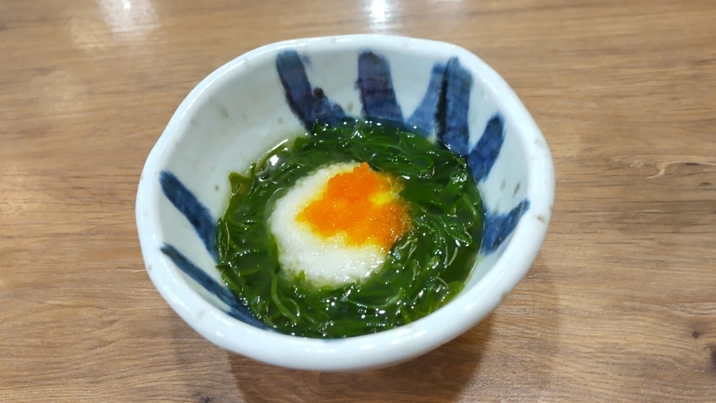 めかぶでビールを飲んでいると唐揚げが出てきた。