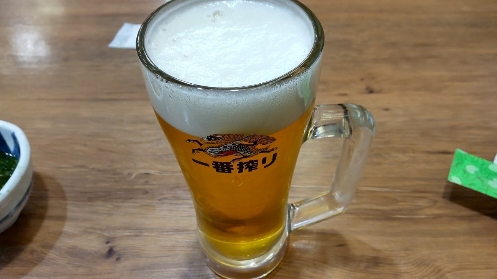 手前側のテーブル席に座って、早速生ビールを注文する。