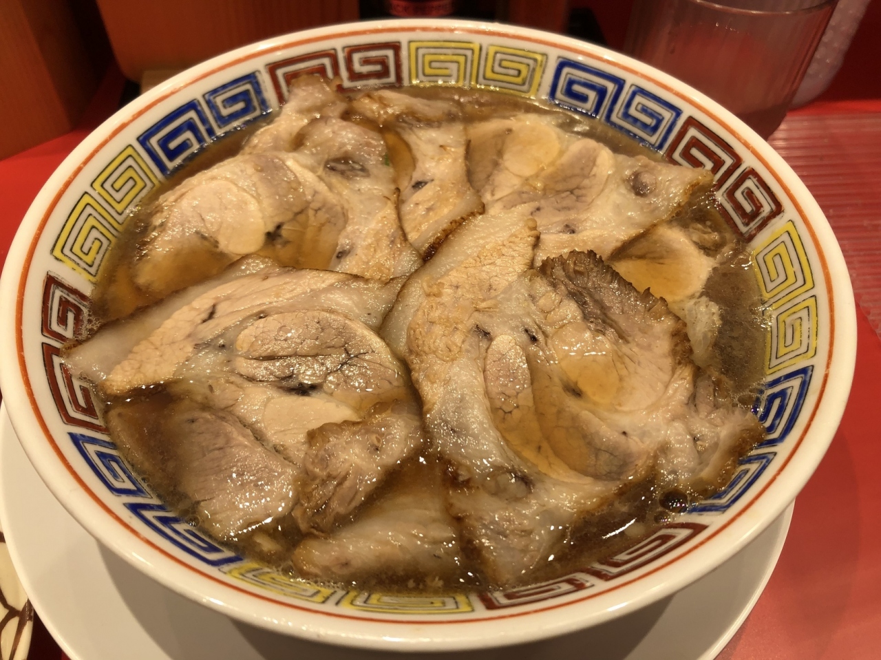 スープは、他のカドヤ食堂と異なり、澄んだ豚肉と豚足からの醤油スープで、アキラ系と呼ばれる系統のもの。深みのある旨味のあるスープで麺を邪魔しない味。麺は自家製麺の細平打ちのストレート麺で、小麦感もありつつ、喉越しの良いツルツルしたもの。スープとの相性はかなり良い。焼豚は鹿児島産茶美豚の肩ロースで、薄いものの大きいのでボリューム感はあります。脂身が甘く、しかしくどくない。肉増しにしたのでさらにボリューム感ありました。次回はつけそばで。