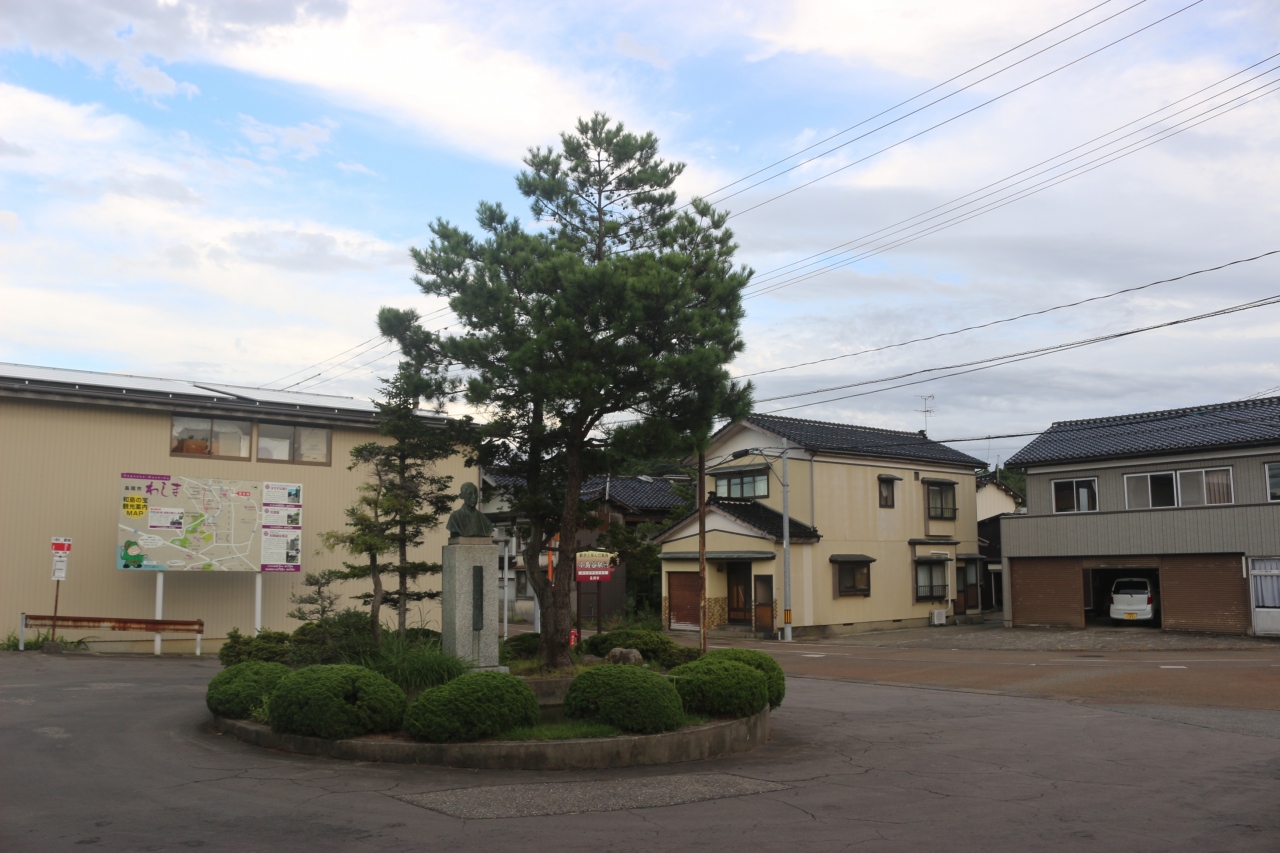 駅前広場はさほど大きくないですが、越後線の前身である越後鉄道の創始者、久須美秀三郎の胸像がありました。