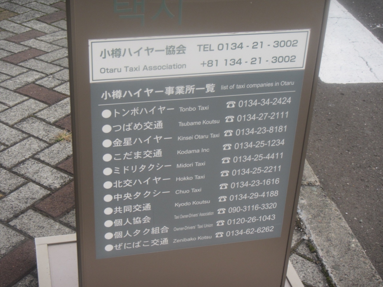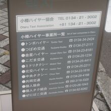 タクシーはフェリーターミナル建物を出たところに乗り場があるほか、その案内板にたくさんタクシー会社の電話番号が書いてあります。