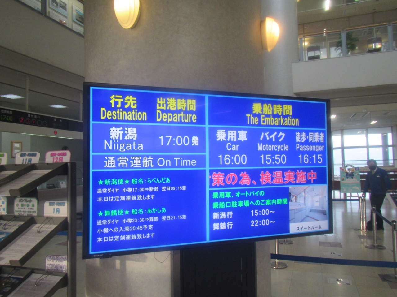 バスはフェリーの運行時間に合わせて、小樽駅発15:29(新潟便運航時のみ)、21:00(舞鶴便運航時のみ)で、フェリーターミナル発が21:30のみで、新潟から朝4:30に着く便には対応していないのが不便です(もっとも、早朝で電車も走っていませんが…)。