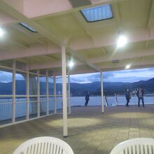 フェリーターミナル建物内に、船を横目に港の展望が良いレストラン「シーガル」がありますが、コロナの影響で営業時間が短縮され、11時から16時(15時ラストオーダー)で、ちょっと使いにくいです。