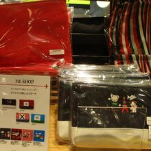 羽田空港第一ターミナルの1階にある、JALグッズや旅行用品などのお店です。JALグッズでは機内で配られるお菓子やインスタント麺、模型、雑貨、文具、玩具などいろいろあります。このお店は寄って行こうと商品を見ていたら、ファミリアとのコラボ商品を見つけました。刺しゅう入りハンドタオルやポーチがありました。かわいかったのですが、お値段は高かったです。
