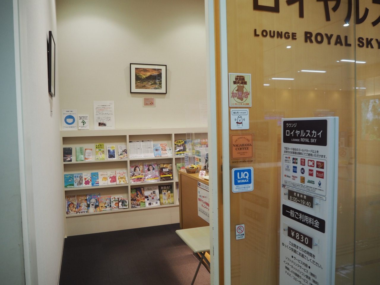 ロイヤルスカイラウンジは空港ターミナルの2階の中央部の手荷物検査の手前の場所にあります。ゴールドカードなどと搭乗券の提示で無料で利用できます。ラウンジ内は細長で一面がガラス張りになっているので明るい感じです。無料でコーヒー、ソフトドリンクがあります。また週刊誌や新聞も置かれていました。利用者は多くなかったので、静かな雰囲気でした。