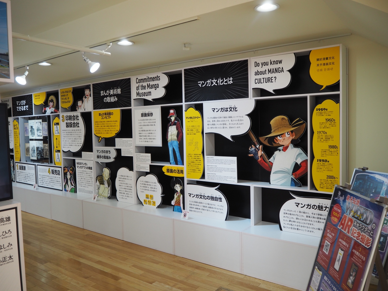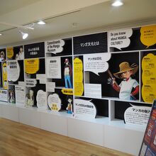 秋田空港のターミナルビルの1階の中央部にコンビニのファミリーマートがあります。広さや品ぞろえなどは街なかにあるコンビニと同じようですが、コンビニの横のイートインスペースが広く、ここで時間待ちの方がコーヒーを飲んだり、食事をしている人が数人いました。時間を過ごすにはいいスペースのようです。コンビニ横には秋田出身の漫画家の紹介スペースがありました。