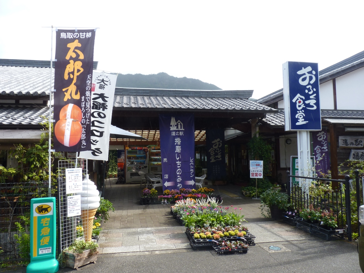 29号線を波賀に向かって北上、左手に一ノ宮伊和神社が見えてくる。その向かいにあるのが道の駅がある。広い駐車場があり少し奥まっているが地元の観光物産が目を楽しませてくれる。特にこの時期は柿の販売が多く、いろんな種類のカキが所狭しと並んでいる。柿好きの人にはたまらないと思う。