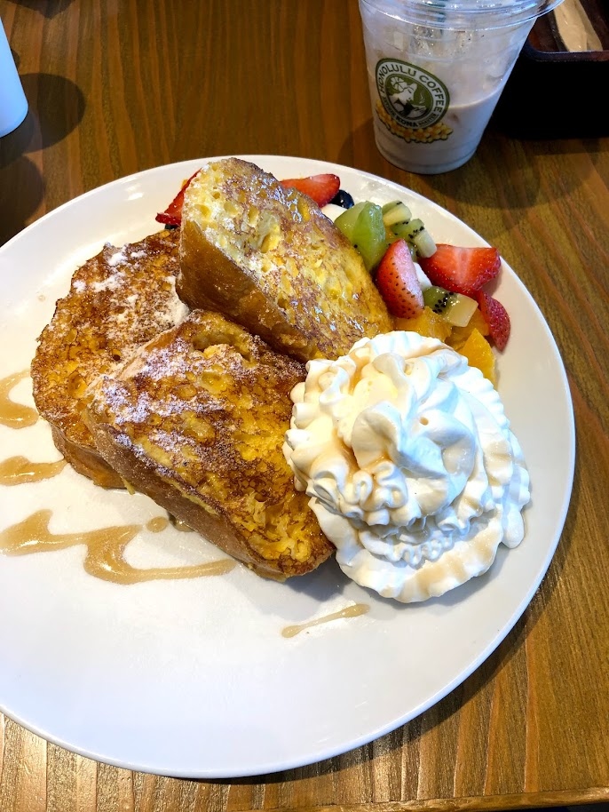 ハワイを懐かしんで、パンケーキを食べに行きました。休日だったので40分近く待ちましたが、久しぶりにパンケーキを食べて大満足。主人はフレンチトーストを美味しいと食べておりました。いつも少食の娘も美味しいと食べていました。