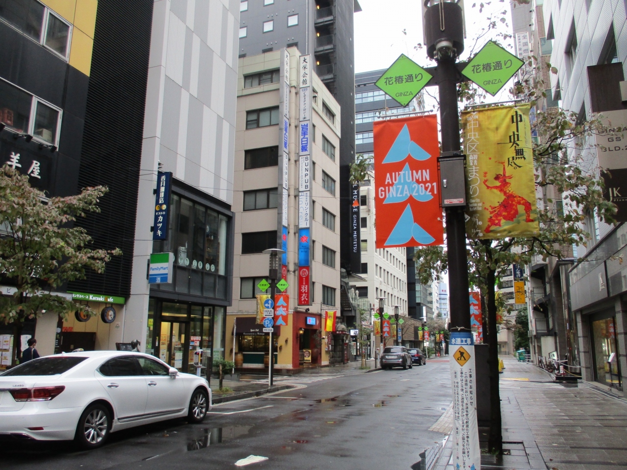 資生堂パーラーがある中央通りと交差する通りです。落ち着いた雰囲気の通りで、椿の花を持った女の子の像があったりします。通り名の由来は昭和初期に出雲椿が8本寄贈されたことによるようです。資生堂と関係があるのかなと思いました。