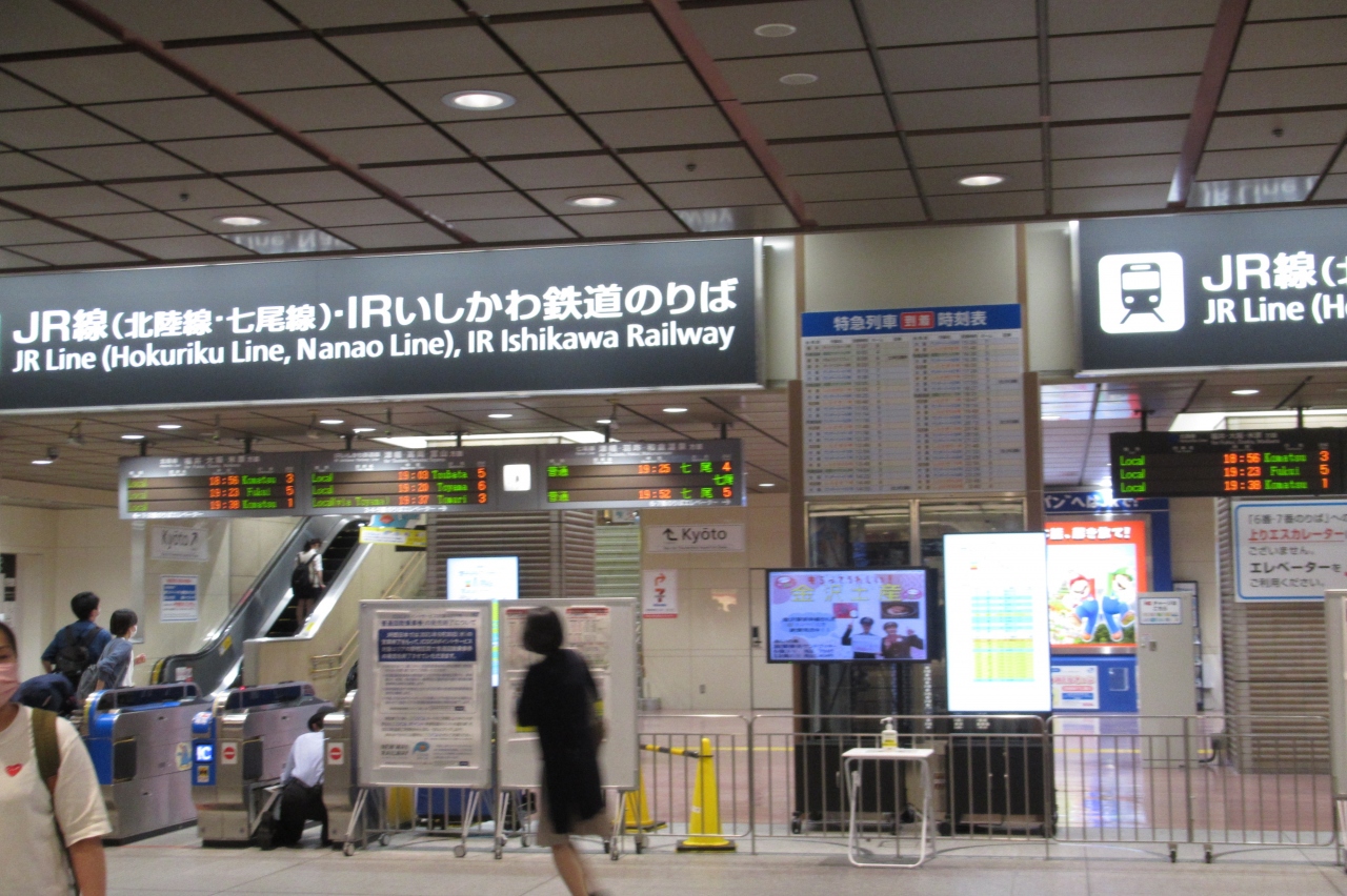 新幹線やサンダーバードが到着するため金沢駅の乗り場周辺はとても混雑しています
