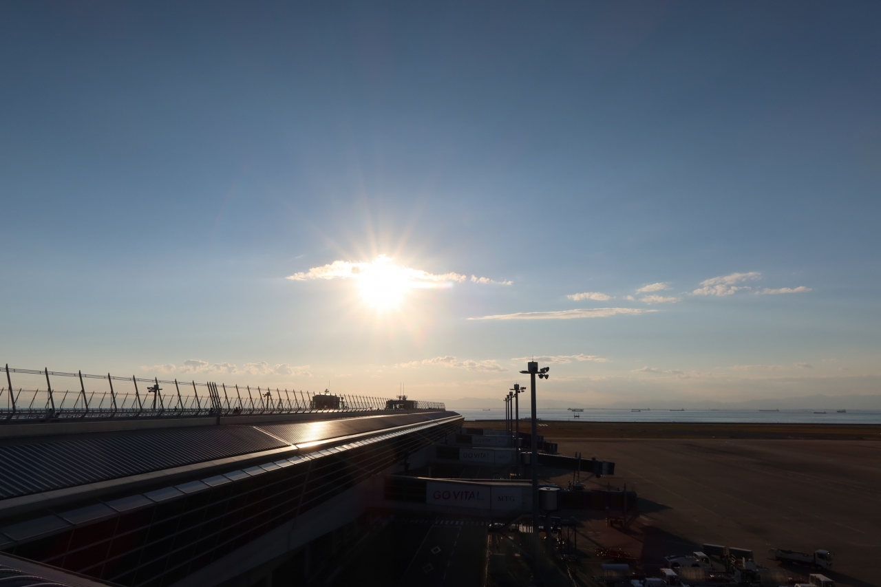 まだ太陽の位置が高かったので、昔見て綺麗だった夕日景にはちょっと時間が早く、ただの逆光の強い空港施設景でした。背後にはカメラだと映らないですが、鈴鹿山脈の稜線がうっすら出て、その前にタンカーがゆっくり進む伊勢湾の雰囲気も空港設備と重なってなかなか良かったです。