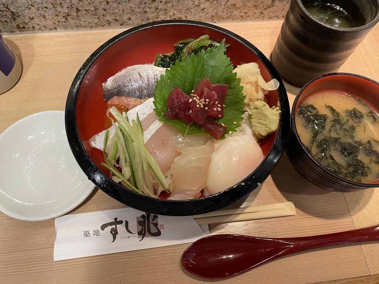 新富町駅近くで重宝している立ち食いのお寿司屋さんです。何度か利用していましたがこの日は仕事の前に初めて漬け丼を注文。握りのお客さんが多くてちょっと後回しになった感はありましたが、丁寧な味付けの漬けネタを味わいました。