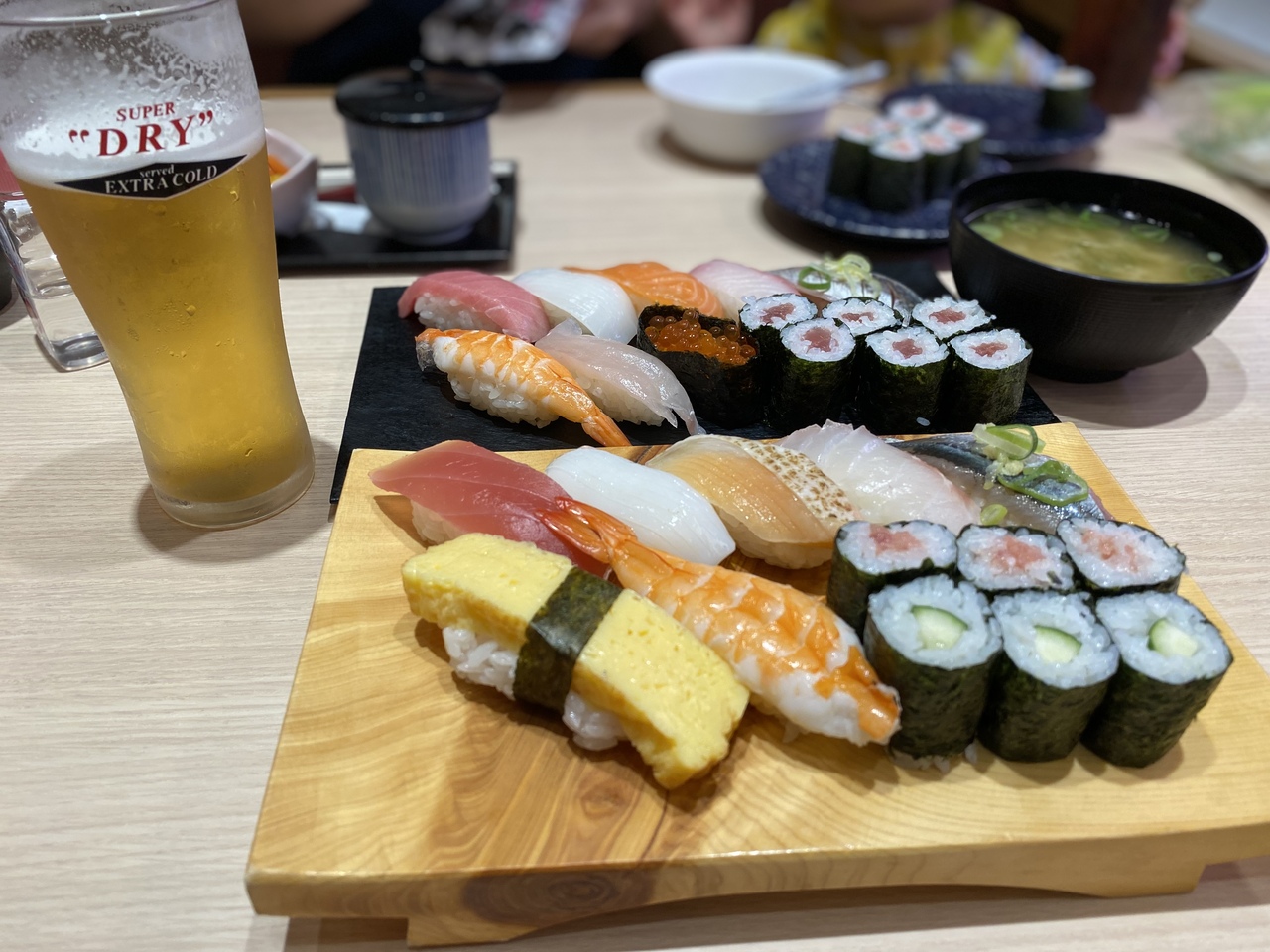 和光市の駅ビルにあるお寿司屋さんです。ちょっと高めの店構えながら値段はリーズナブル。と思いきや、あの牛丼チェーンのお店でした。広い店内で子供2人でもゆっくり味わえる環境。久々の外食ビールを堪能しました。お寿司もまずまずです。
