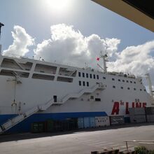 この日の臨時便は15:00出航の予定でしたが荷の降ろし積みがあり結局17:00。通常、鹿児島までは26時間ほどかかるようですが、この便は途中の寄港は一切ないので所要19時間で翌日の昼12:00に鹿児島に到着しました。乗客は20人ほどだったようです。