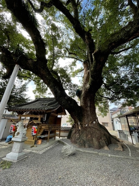 西国第三番札所粉河寺の門前にある神社。境内にある樹木は、天然記念物であるクスノキ1本であるが、境内地全域を覆い、更に境外にはみ出して繁茂しこの1本の大楠で神社の森厳さを保持している。樹令は1,000年余といわれ高さ25m、胴回り15m。このクスノキに触れるとご利益があると云われている