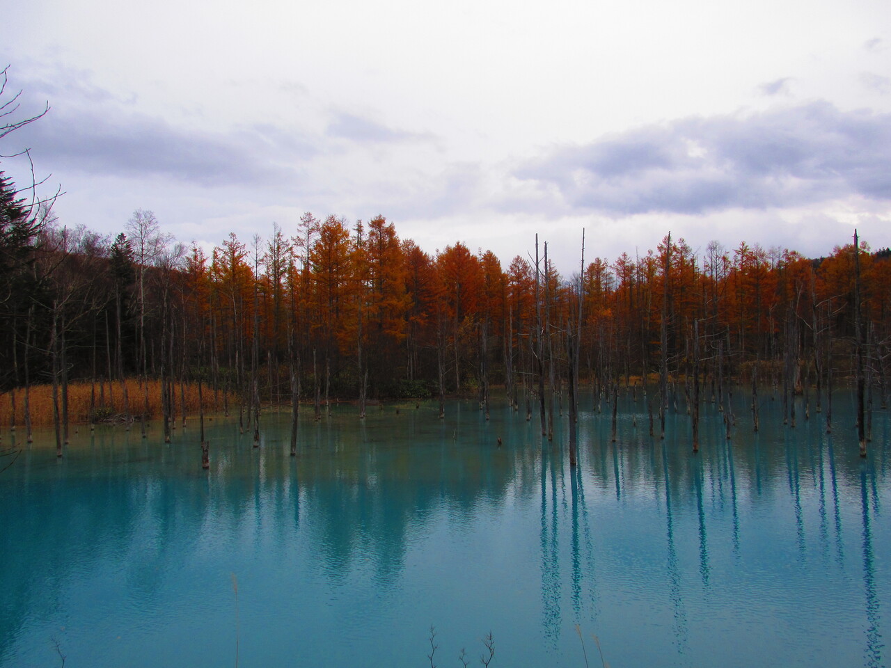 写真などで見るように本当に青い色をした池でした!