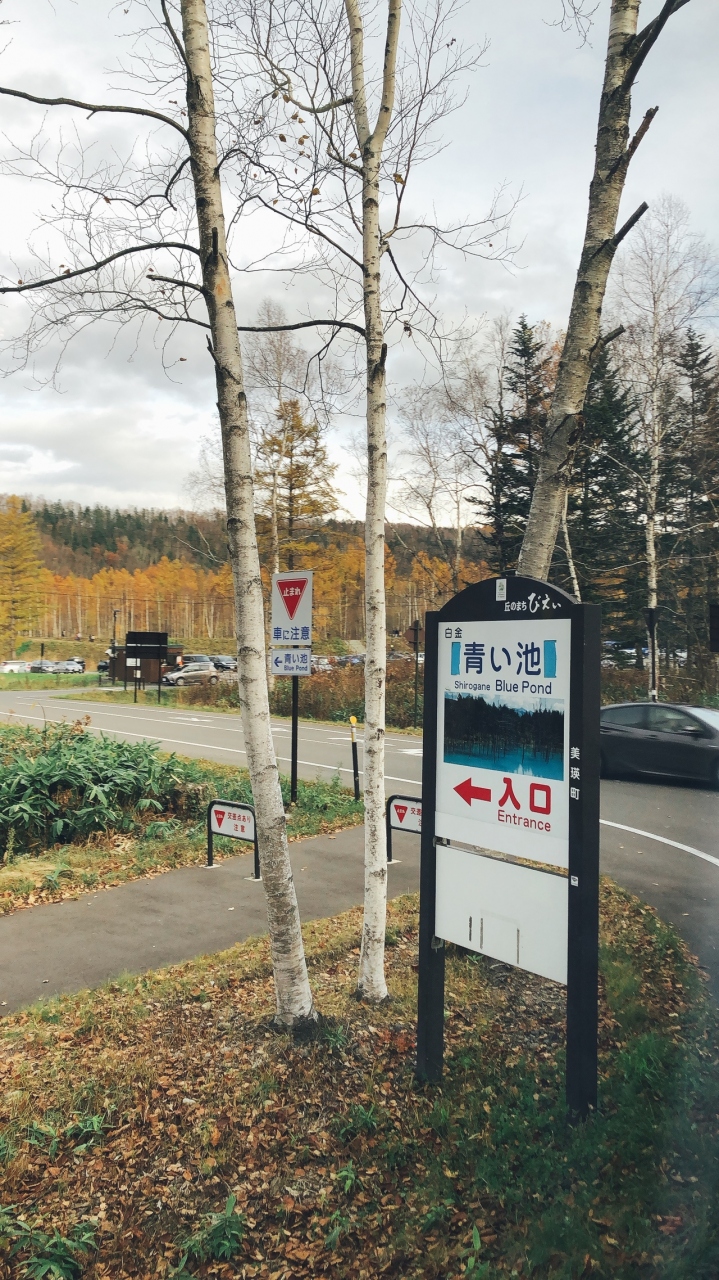 山の中にあるので秋は紅葉が美しく、紅葉と青い池を一緒に撮ると、まるで絵画のように綺麗でした