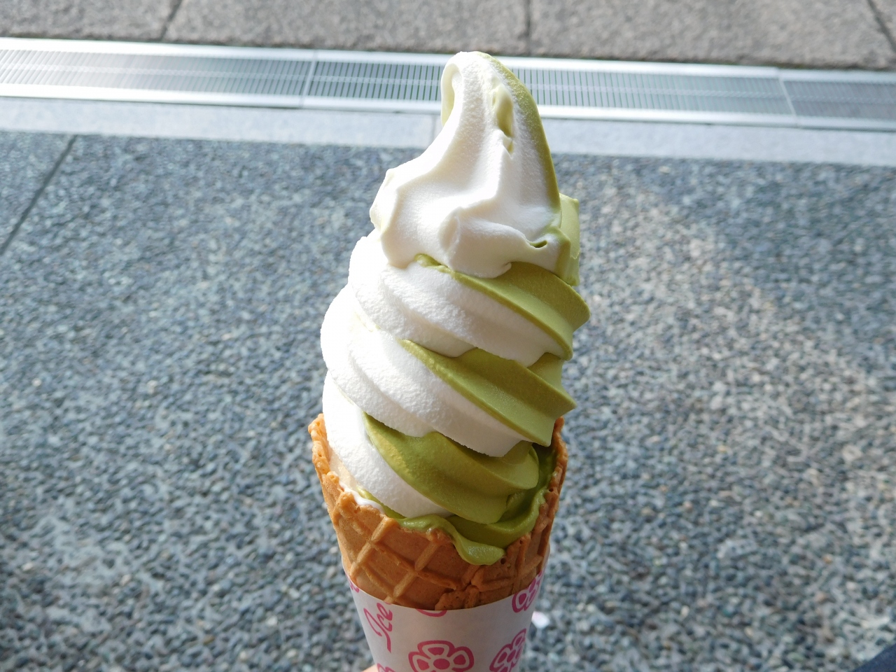 金閣寺の最寄のバス停から金閣寺へと向かう途中、信号の手前に、甘味処の「やまざき庵」がありました。ちょうど暑い日でもあり、金閣寺への参拝前に立ち寄って、休憩がてらにソフトクリームを頂きました。テイクアウトのお店で、外にベンチが置いてあってそこで食べるようになっていました。金閣寺絡みで、金箔の載った少し高いソフトクリームもあり、金箔入りのソフトクリームが結構売れているようでした。気軽に立ち寄れるお店で、良かったです。
