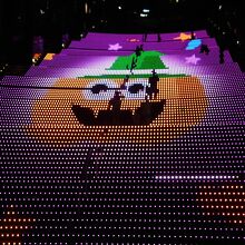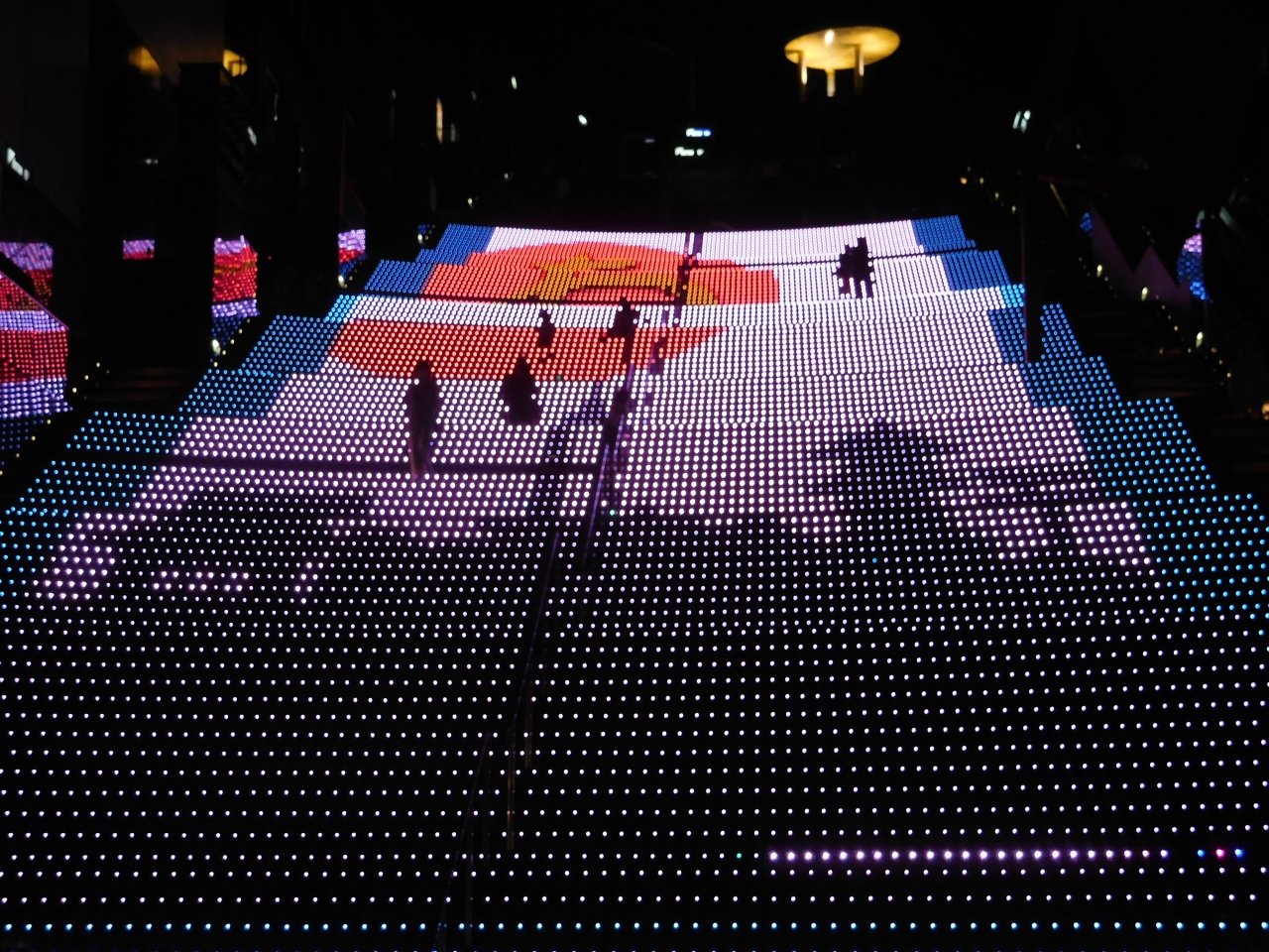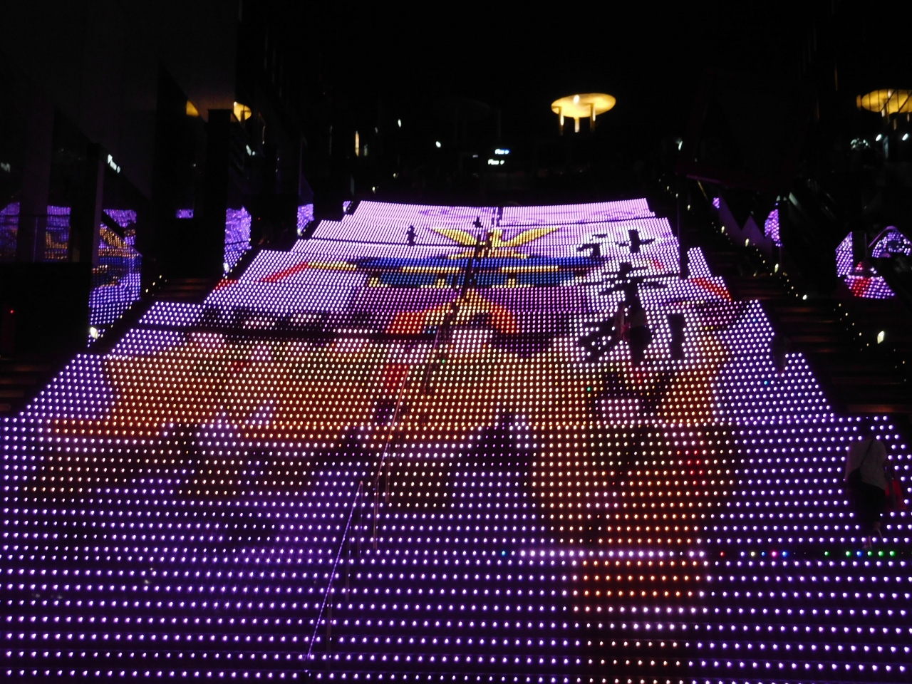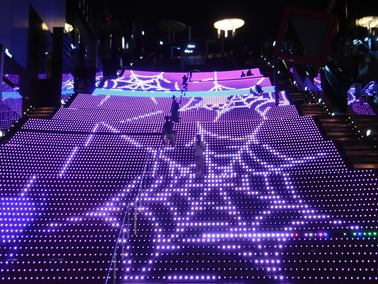 京都駅ビルの大階段にて夜に開催されているグラフィカルイルミネーションです。季節ごとに演出が変わるようで、訪れた10月は、ハロウィンも組み合わさったメニューで行われていました。音楽と映像が組み合わさって、スケールの大きな演出になっていました。無料の為、気軽に鑑賞できる雰囲気で、階段に登ったり下ったりして、楽しんでいる子供達もいました。1クール15分だったので、一通り見る事が出来、思いがけず楽しむ事が出来て良かったです。