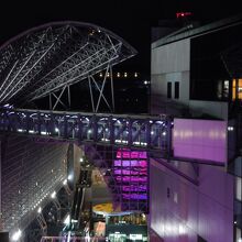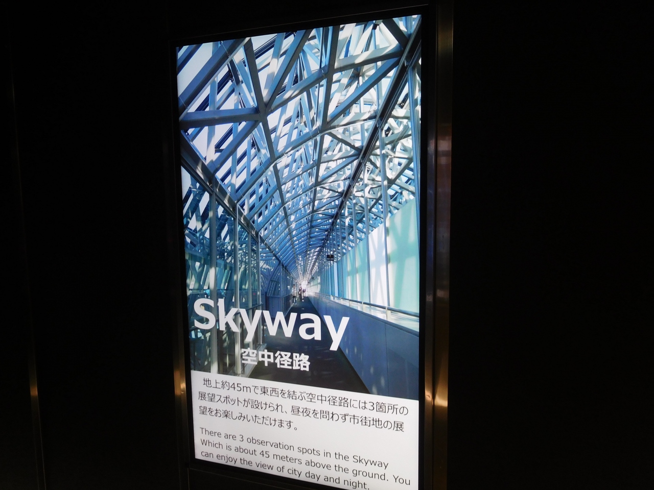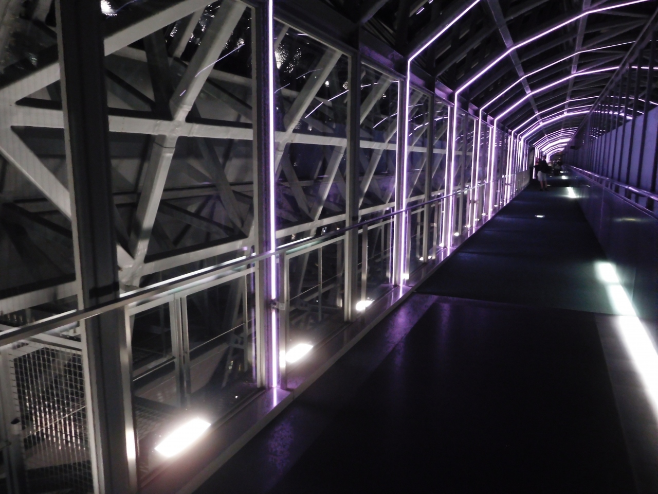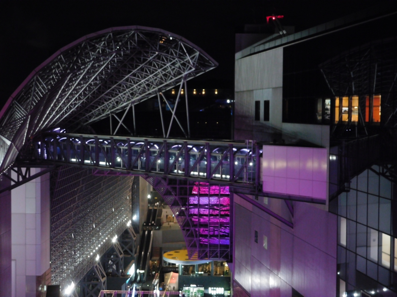 京都駅ビルの10階(地上約45メートル)の場所にある空中径路Skywayです。大階段でのグラフィカルイルミネーションPlusを見た後、エスカレーターでずっと上まで行き、少し階段で降り、「拉麺小路」の奥の方から入りました。(少し分かりずらかったです。) 夜だったので、宇宙空間のような光の演出もあり、幻想的な通路を歩いて行きました。途中、京都タワーが見えるスポットなどもあり、近代的な京都を体験しているような感覚になりました。あまり知られていないスポットだと思うので、時間があれば、是非訪れて見ると良いと思います。