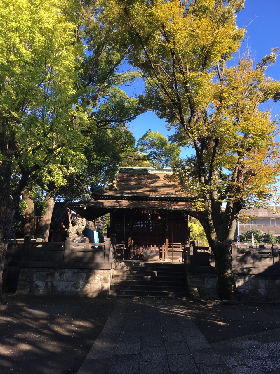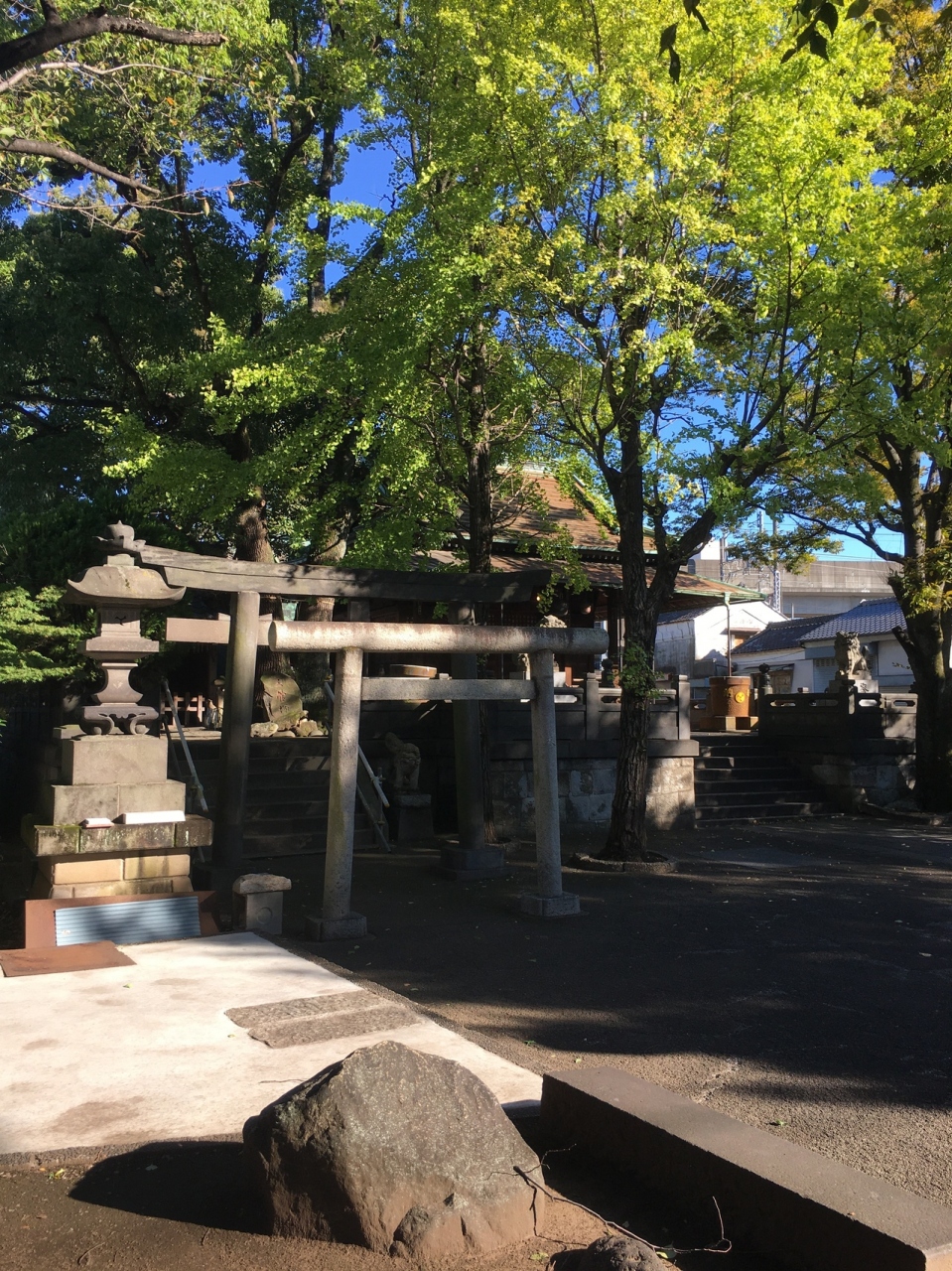 住宅街にあり木々が囲っているような境内で木陰が目立ちました。中央は空間になっていて階段を数段上がると赴きがある社殿で、その後方は線路なので電車の音が聞こえました。社殿の横には大きな木があり、その下に三管塚と言う石碑がありました。