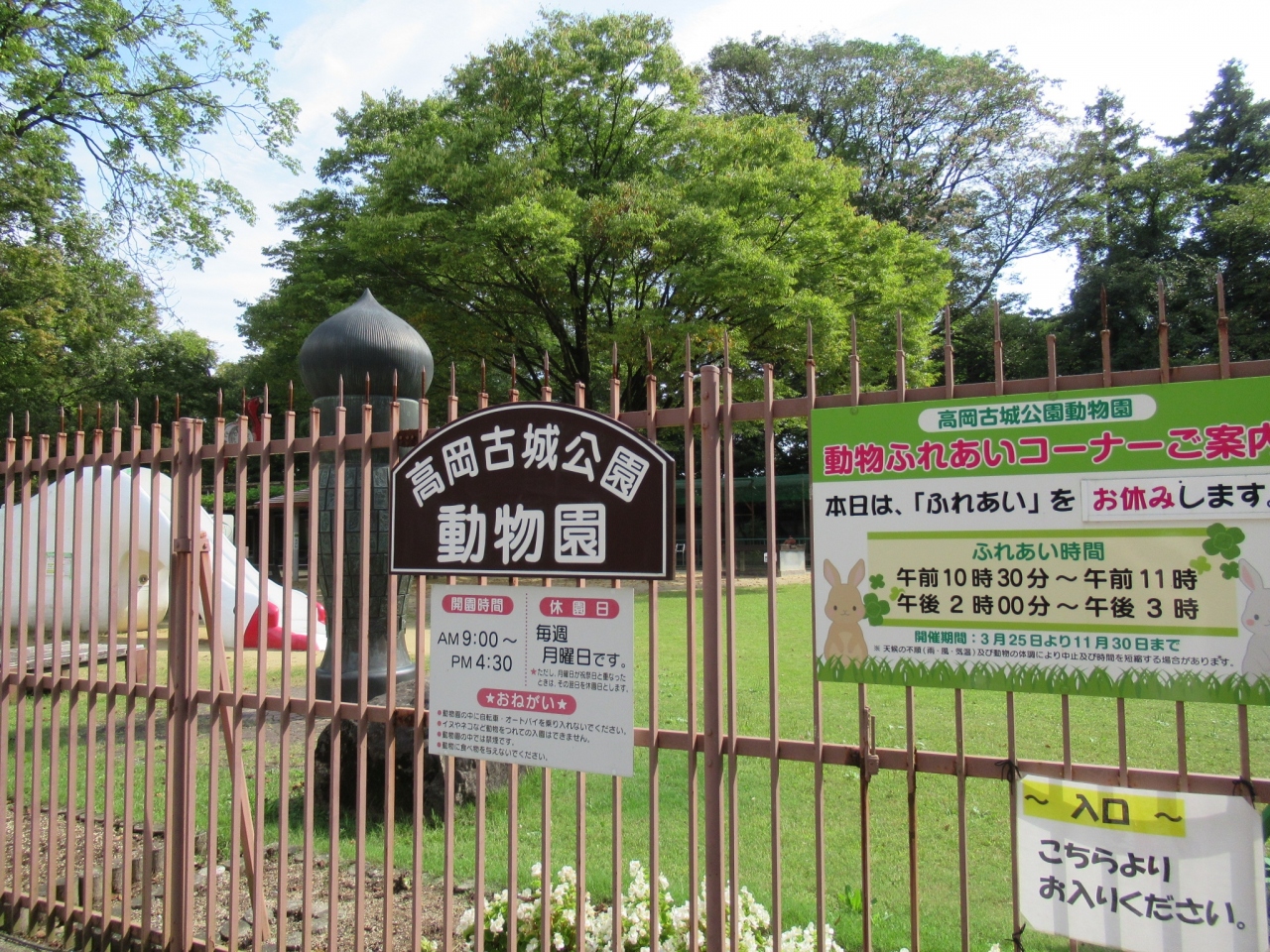 高岡古城公園の中にある無料の動物園で、小動物を中心に約40種135点の動物園がいるとのことです。残念ながら時間がなく、観覧できなかったのですが、入口に「アンパンマン」「絵筆塔」のモニュメントがあります。