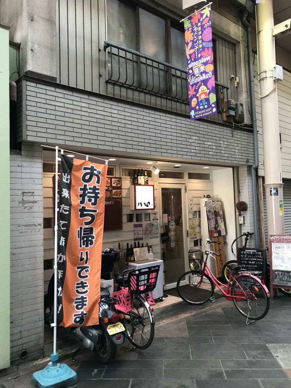 伏見区桃山の納屋町商店街にある中華料理とワインの店。 週替わりランチがお得です。