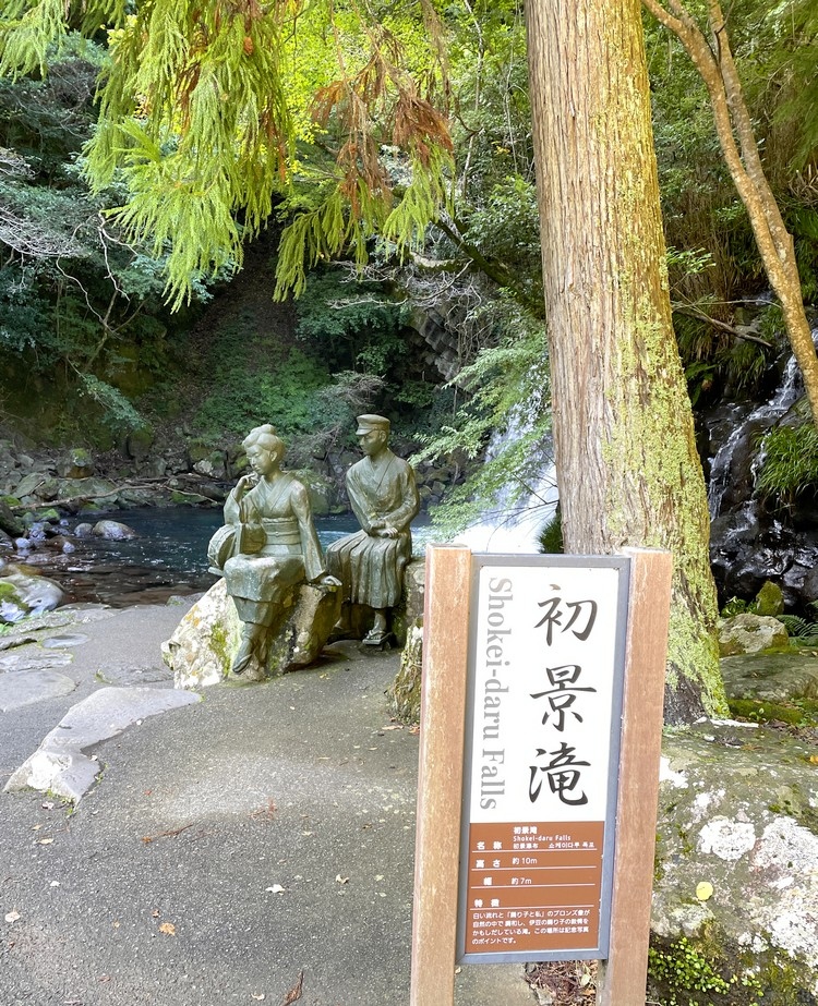 「踊り子と私」ブロンズ像のある初景滝( shokeidaru )は緩やかな坂道の先にあるので幼児、ご老人連れにもおすすめで滝の高さは約10m。