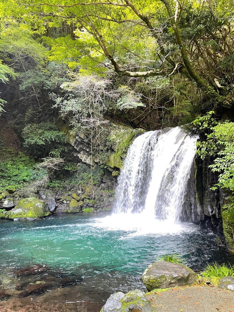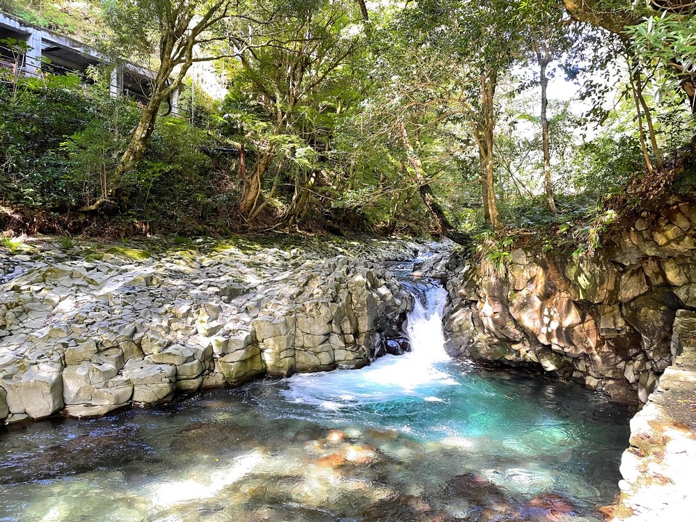 出合滝( deaidaru )も高さ約2mと低い滝ですが、2つの流れがここで出合って一つの流れになった所の水の青さが美しい滝です。