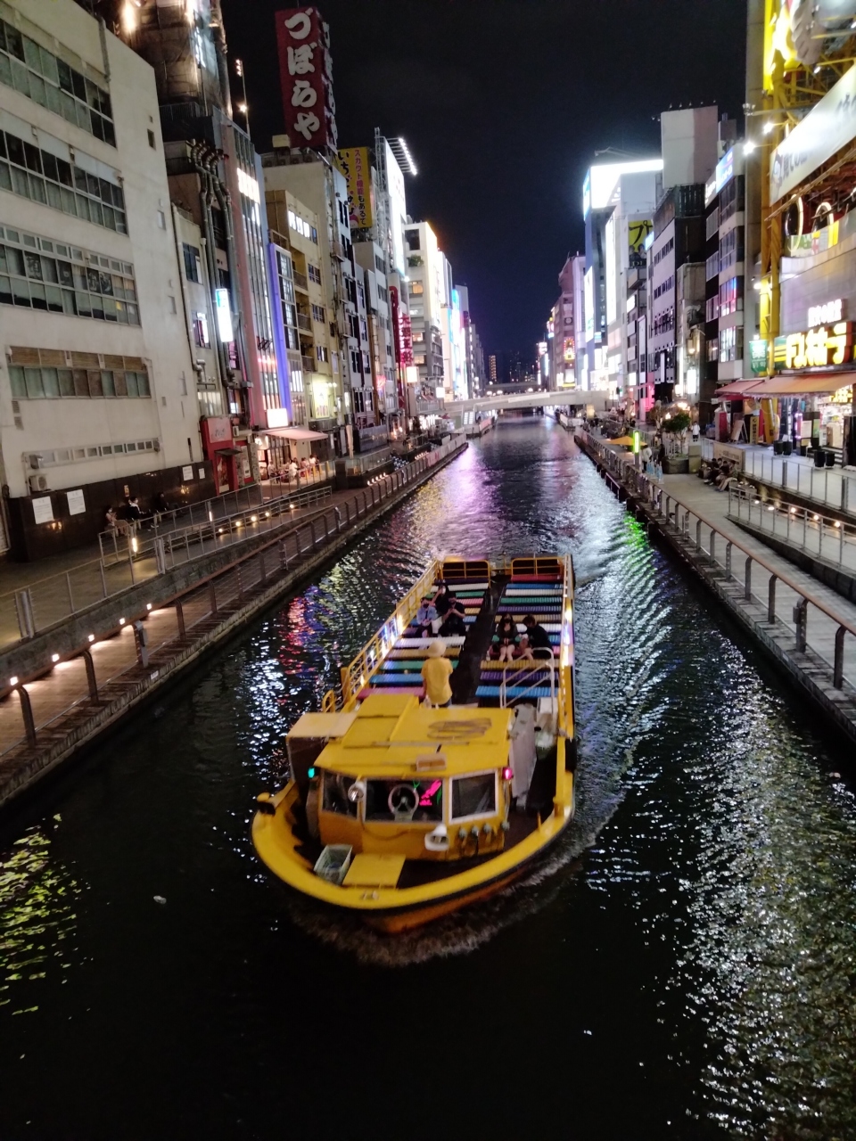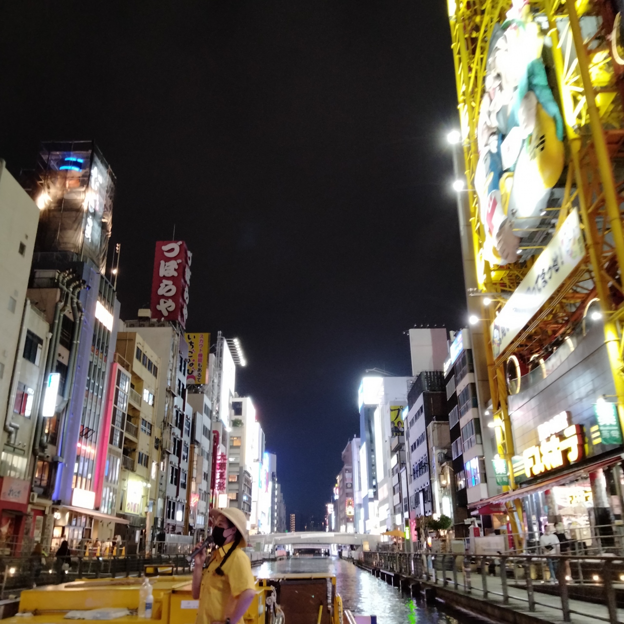 いつもとは違った角度から見上げる「グリコのカンバン」や戎橋等は、いつもと違った趣がありました。