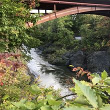 滝上町の中心部を流れる川で、特にお勧めなのが錦仙峡です。遊歩道が整備されていて散策しやすく、景色も美しいです。落差の大きな滝もあるなど、街中にありながら美しい渓谷美が見られます。また、渚滑川に架かる虹の橋も橋の上から、ゆっくりと渚滑川の景色を眺めることができてお勧めです。