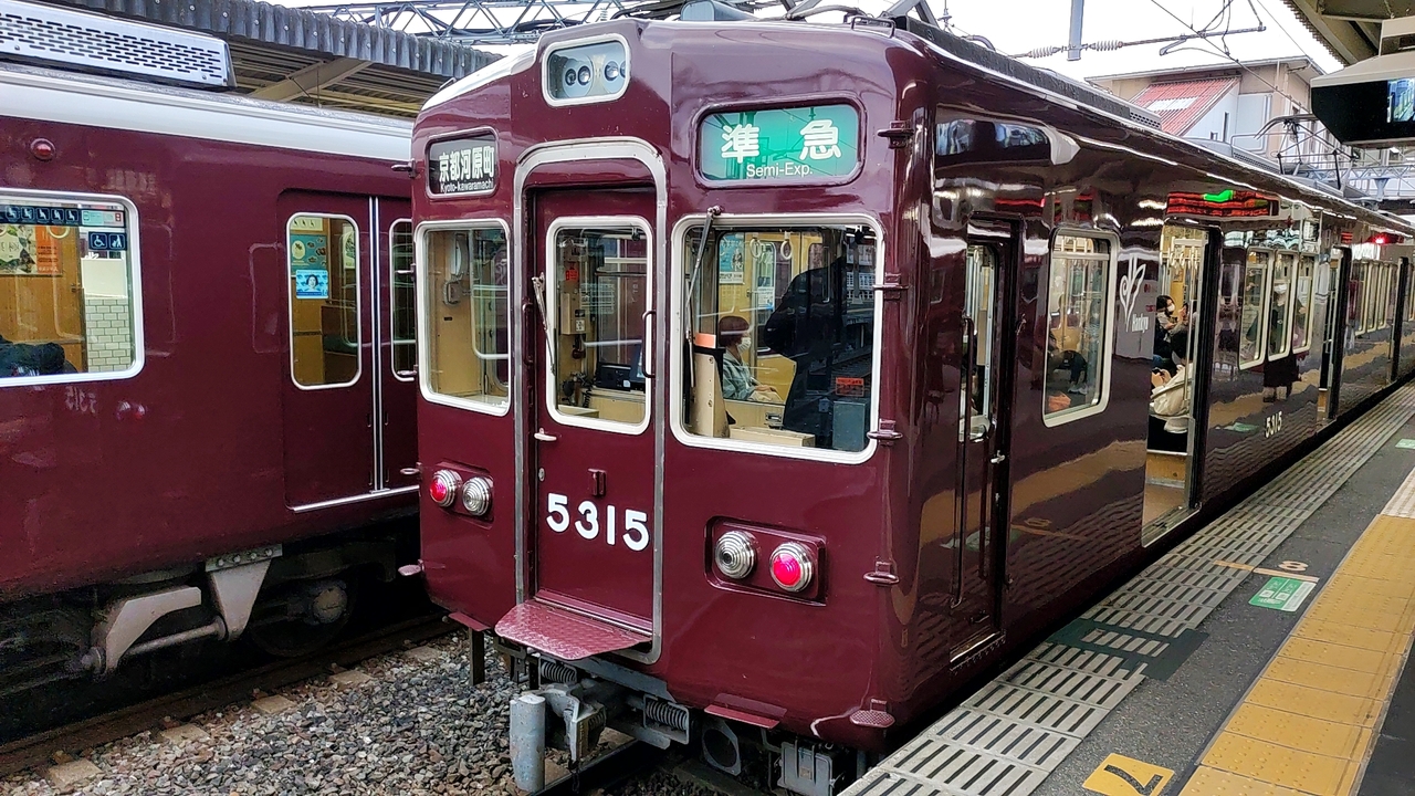 阪急電車で桂から河原町方面に向かって乗車しました。乗ったのは各駅に停車する準急電車。日曜日の夕方で座席が少し空いている程度の混雑度でした。特急電車は立ち客もそれなりにいる時間帯ですのゆっくりと準急で移動するのが良さそうです。