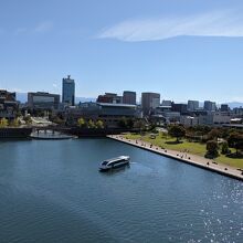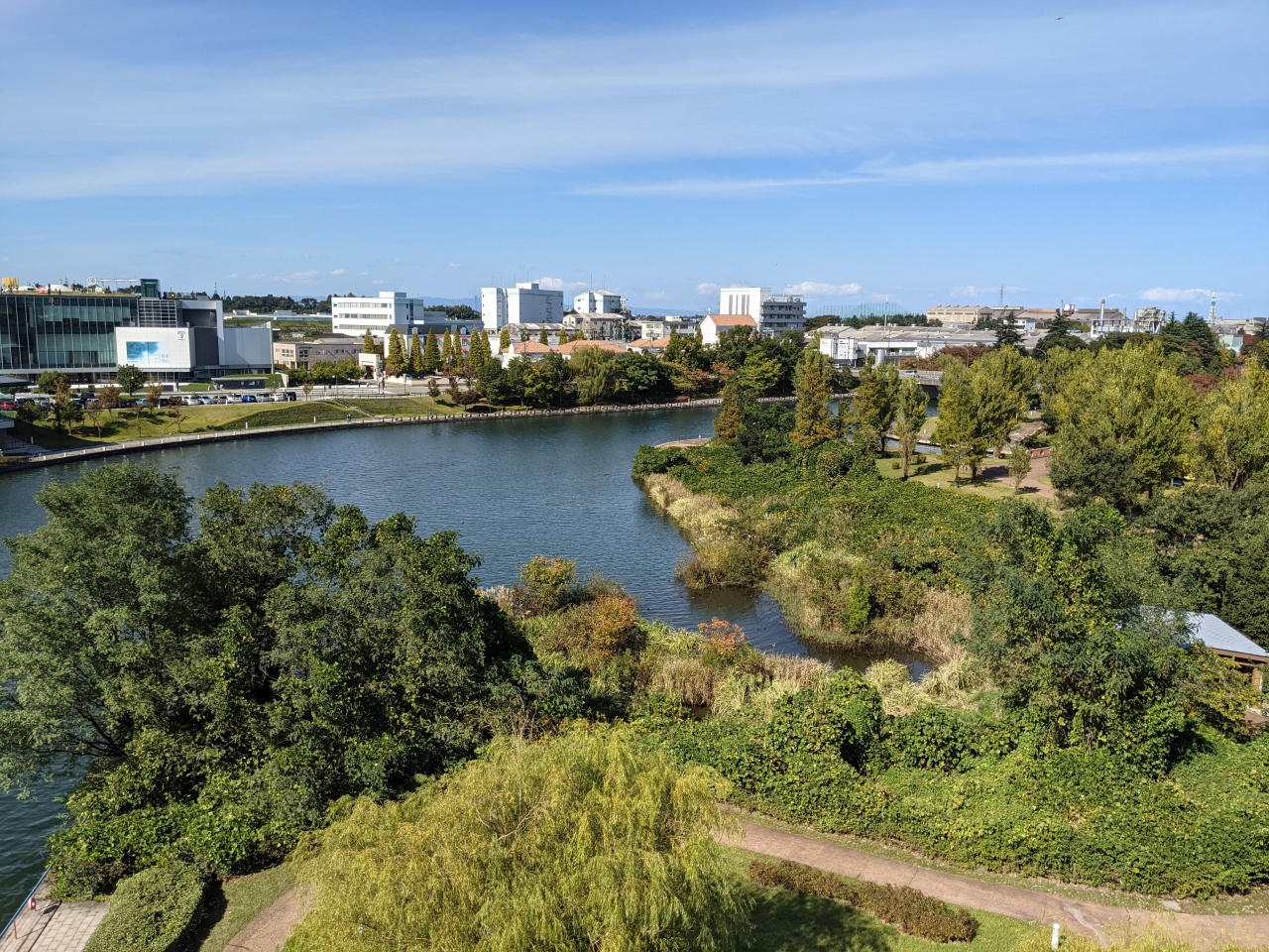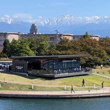 何やらヨーロッパやアメリカのような雰囲気の広大な公園です。こちら雰囲気が素晴らしく、無料wifiがつながり、立山連峰まで見渡せます。家の近くにこんな公園があったら毎日でも通いたくなります。富山市民がうらやましい。