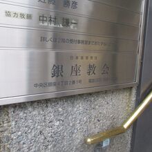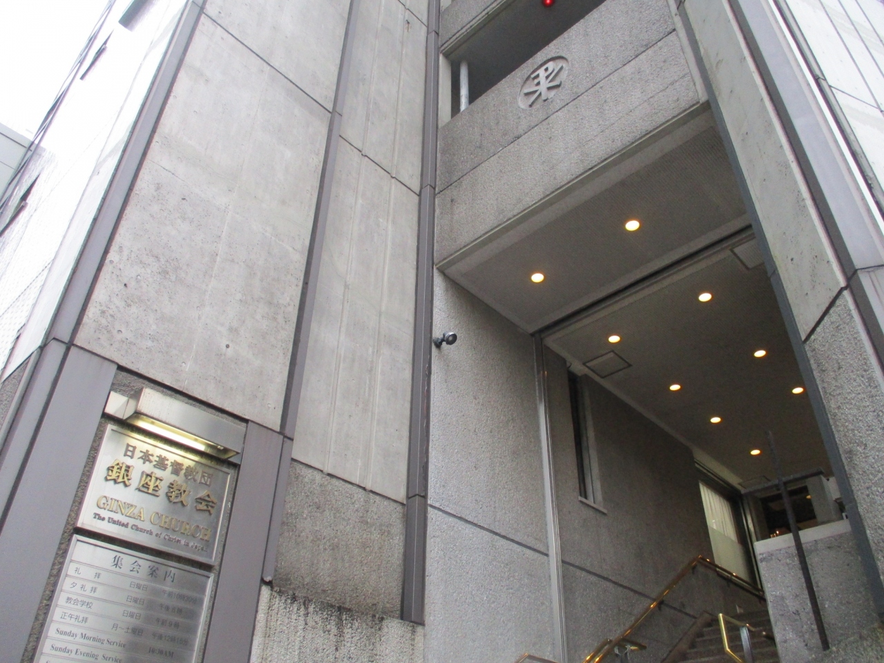 西銀座通りの銀座西三丁目交差点の近くにあるプロテスタント(メソジスト)の教会です。近代的なビルで、見上げると上に十字架がついています。新しそうに見えますが100年以上の歴史がある教会です。多くの通行人が行き交う場所にある教会って珍しいと思いました。