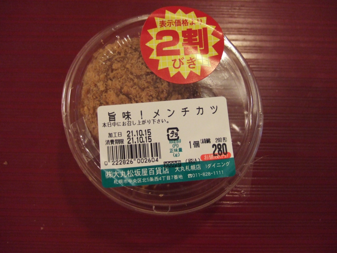 帯広の美味しい豚肉「どろぶた」は、精肉売り場でも売っていましたが、お総菜売り場ではメンチカツに。ジューシーで肉のうまみが存分に楽しめました。