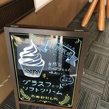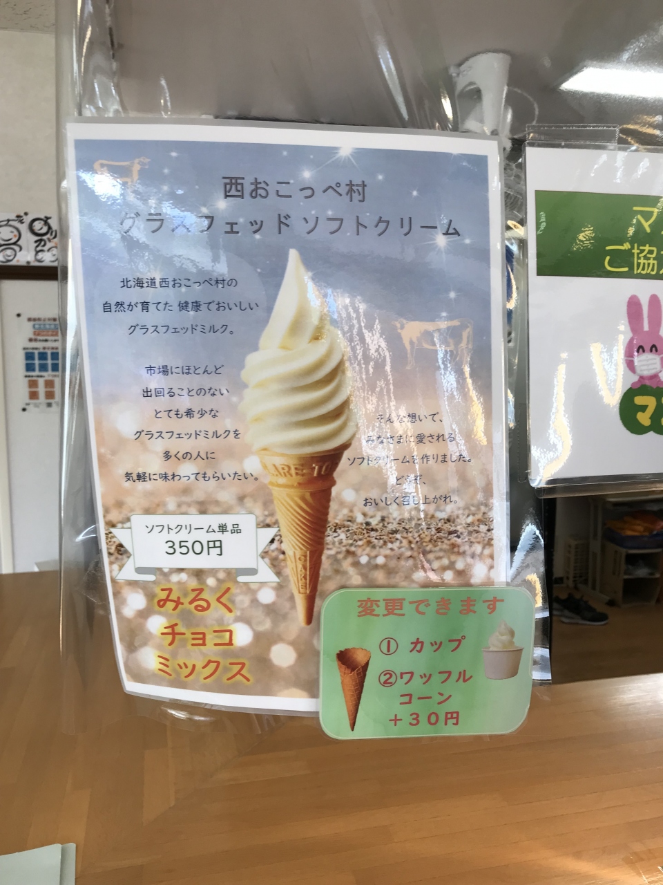 ショップは小さくて、お土産は少なかったです。レストランはありませんが、とても希少だというグラスフェッドミルクを使っているソフトクリーム(350円)が食べられます。ミルクとチョコのミックスをいただきました。さっぱりした味で美味しかったです。