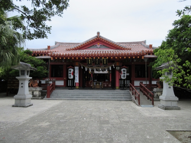 波の上ビーチに行くと、崖の上に神社らしき建物が見えました。ビーチから歩いて行くと、なかなか立派な神社でした。いつ創建されたのか定かではないようですが、第二次世界大戦で焼失してからの再建とのことですが、那覇で一番立派なようです。