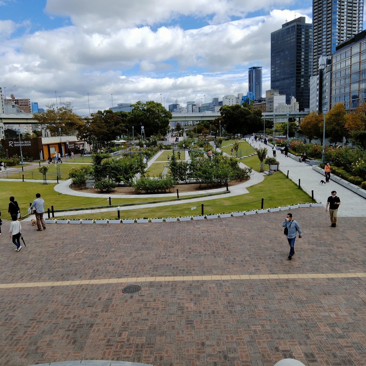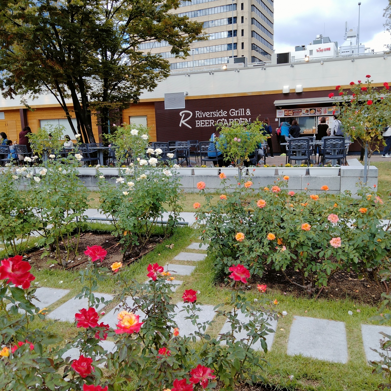 前日に「中之島リバークルーズ」を利用した際にバラの咲く公園を見つけ、翌日に訪れました。