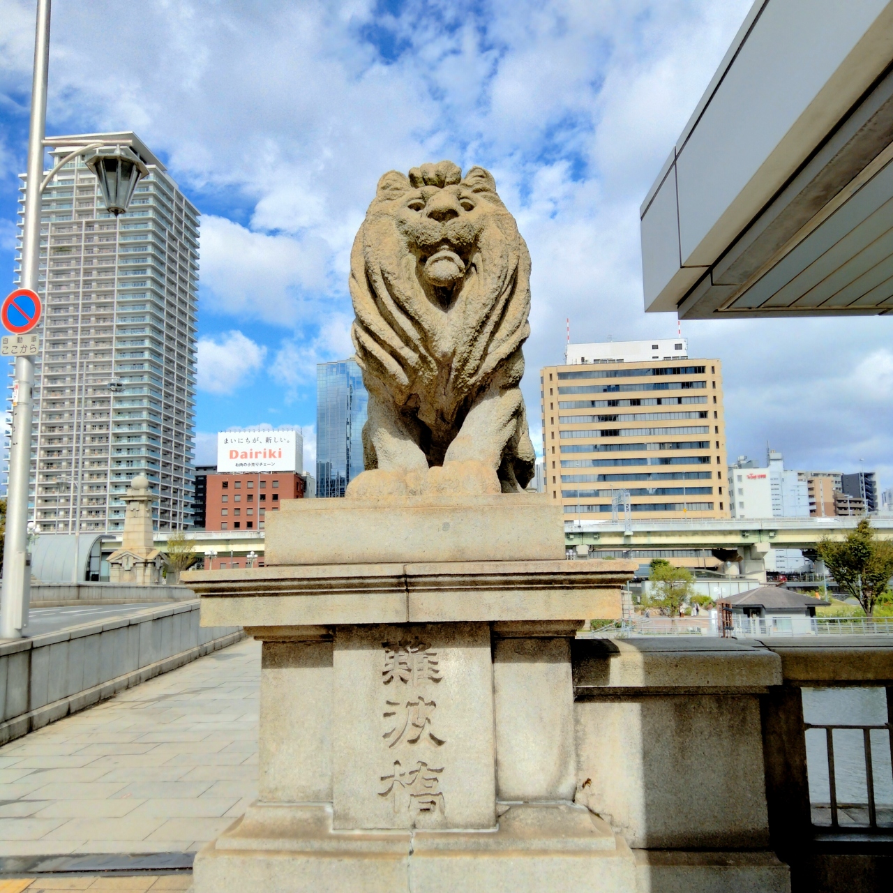 江戸時代からある「ライオン橋」だそうです。(当時は難波橋?)