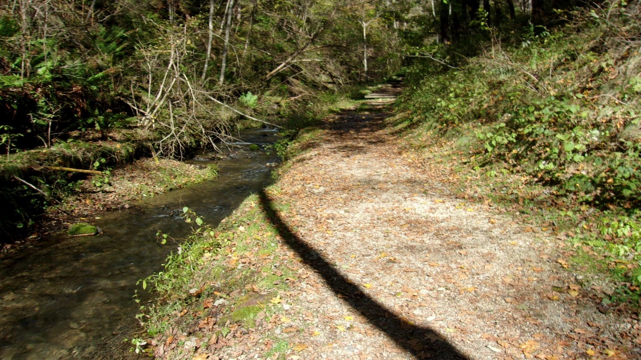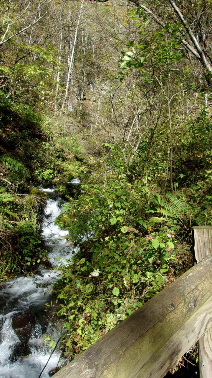 「せせらぎの道」入口の橋から1キロの緩い上り坂。道はよく整備されていて、20~25分で滝の手前の通行止めまで行ける。